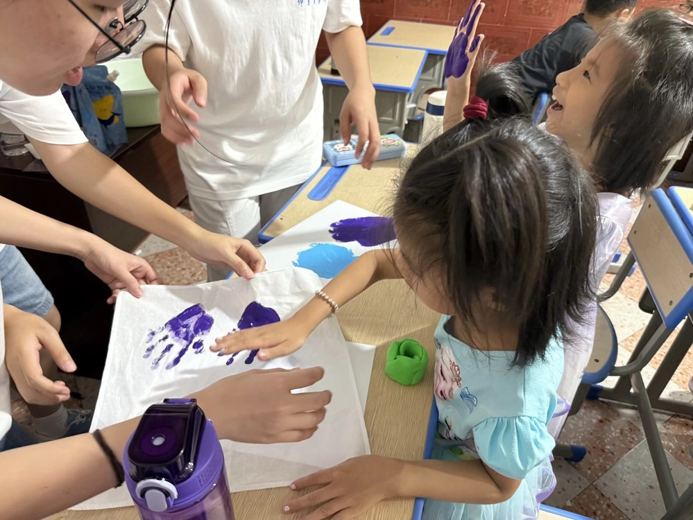 7月15日,beat365官方网站“童”韵传薪赴莆田新墩暑期实践队在新墩侨乡留守儿童之家开展一场以“手印相牵,温暖同行”为主题的互动活动。用独特的方式定格青春与童真的相遇,也为这个夏日增添了一抹别样的温情。