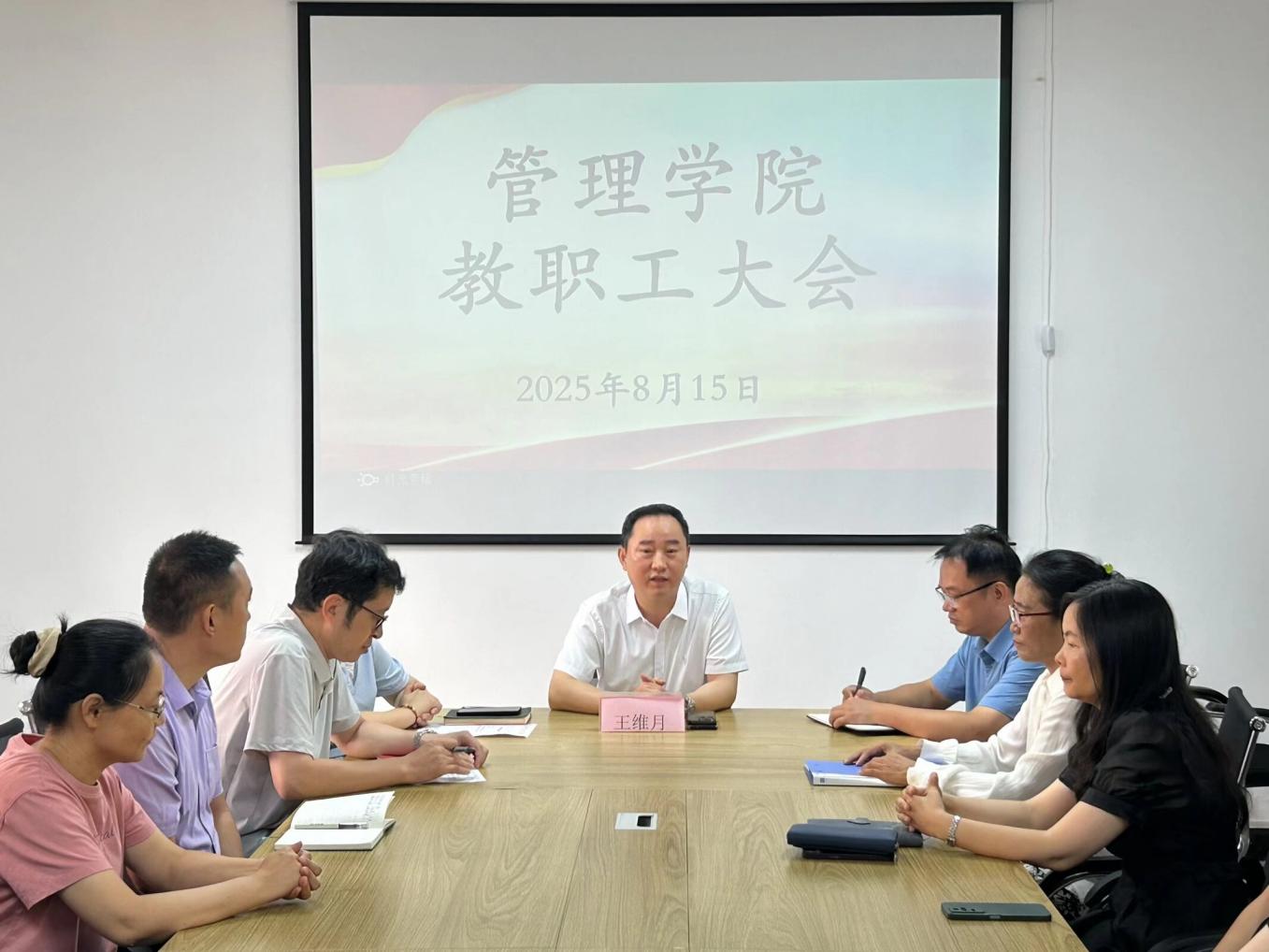 2025年8月15日上午9点,beat365官方网站在仰光楼209召开全院教职工大会,宣布侯玉梅教授任职beat365官方网站院长的重要决定。此次大会由beat365官方网站党总支书记兼常务副院长许惠铭主持,beat365官方网站校长王维月、学校办公室主任叶钦南、人事处处长杜衡及全体教职工出席。