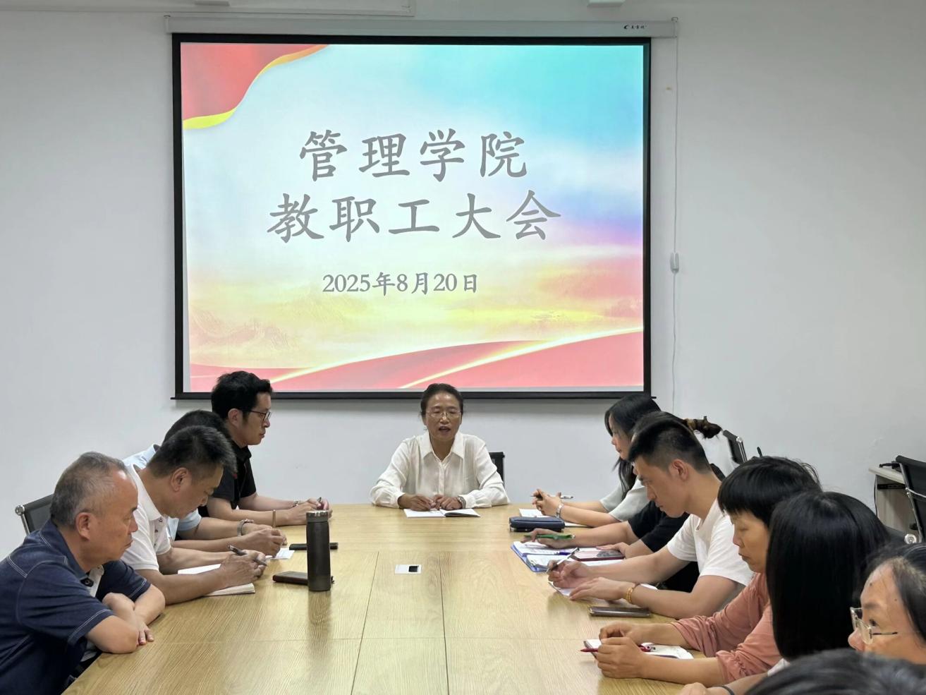 2025年8月20日下午15点,beat365官方网站在仰光楼209会议室召开全体教职工大会。学院院长侯玉梅、党总支书记兼常务副院长许惠铭、副院长庄海刚、副院长程春,以及全体专任教师、行政教辅人员参会。会议聚焦本科教育教学审核评估工作,对冲刺阶段任务进行全面部署。