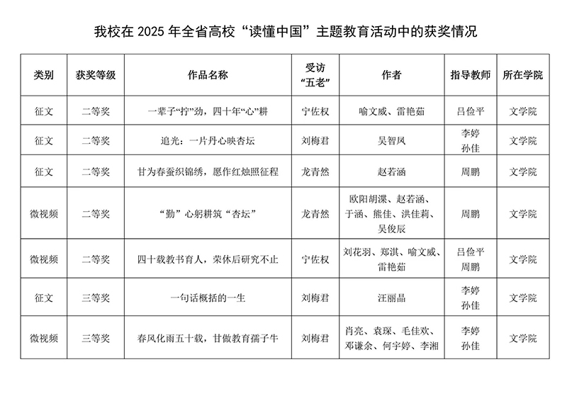 近日,湖南省委教育工委公布了2025年全省普通高校“读懂中国”主题教育活动评选结果。MILE米乐关工委报送的7项作品全部获奖,其中二等奖5项,三等奖2项。
