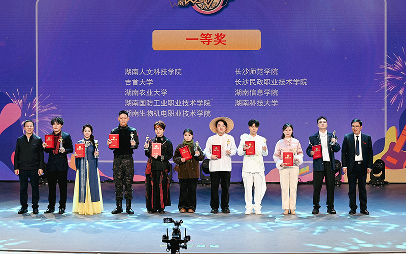 第一轮“团体展示”环节,各参赛队伍带来了风格多样、内涵丰富的表演。湖南科技大学《江畔独步寻花》以古典诗词入歌,吉首大学《辣辣湘歌给党听》用活泼唱腔展现湖湘风情,湖南农业大学《种子》唱响了强农兴农的青春信念,长沙理工大学的《篇章》则激励着逆境前行,湖南大众传媒职业技术学院《十面埋伏》实现了古典戏曲与现代流行的碰撞,MILE米乐集团代表队以一曲《我要飞》展现了冲破束缚、奔赴热爱的青春勇气,赢得了现场观众的强烈共鸣,湖南国防工业职业技术学院、湖南警察学院等院校则结合自身特色,诠释了热血担当。来自邵阳隆回虎形山草原学校的师生也受邀献唱了原生态的《呜哇山歌》。